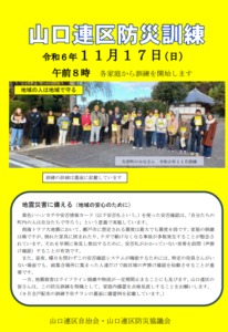 令和6年11月17日午前8時から瀬戸市総合防災訓練に伴う第2回山口連区防災訓練を実施した。今年度6月16日夕刻5時から実施した第1回訓練に続くものである。