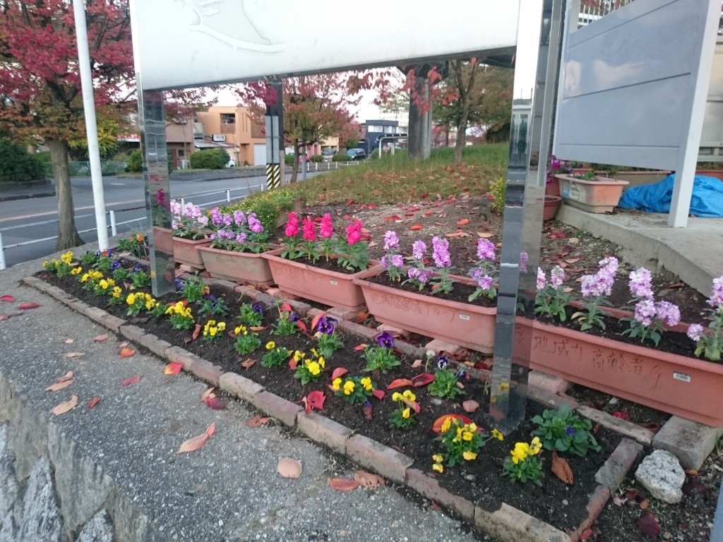 11月10日(火) ひだまりステーションの花壇の花を植替えました。 ここにきて雨が増えてきたので、雨の合間の晴れの日に実施しました。 また、バス停と中学校が近い…