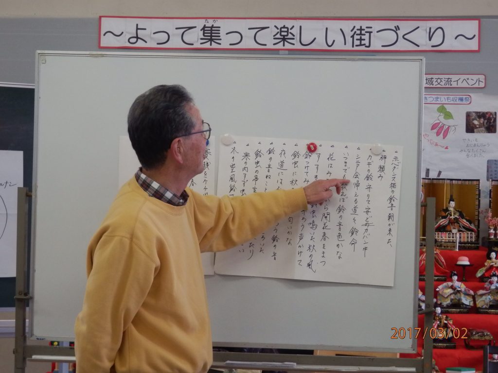 3月2日(木)午後2時~長根ふれあいセンター゛連”で、講師に丸山 進 氏(朝日中部川柳大会大賞受賞)を招いて川柳教室を開催しました。 川柳教室は今回で3回目なの…