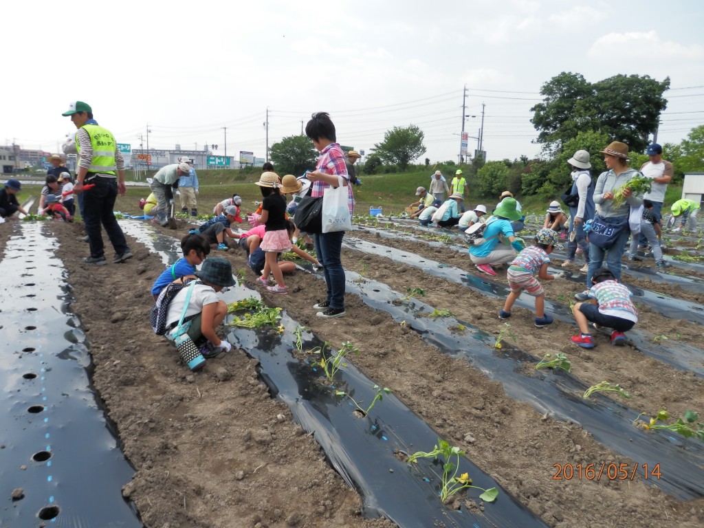 5月14日、ふれあい農園でお父さん、お母さんと一緒に子供達が、さつま芋の苗を植えました。 畑に穴をあけ、苗を植え易く準備してあったので、子供達だけで600本の苗…