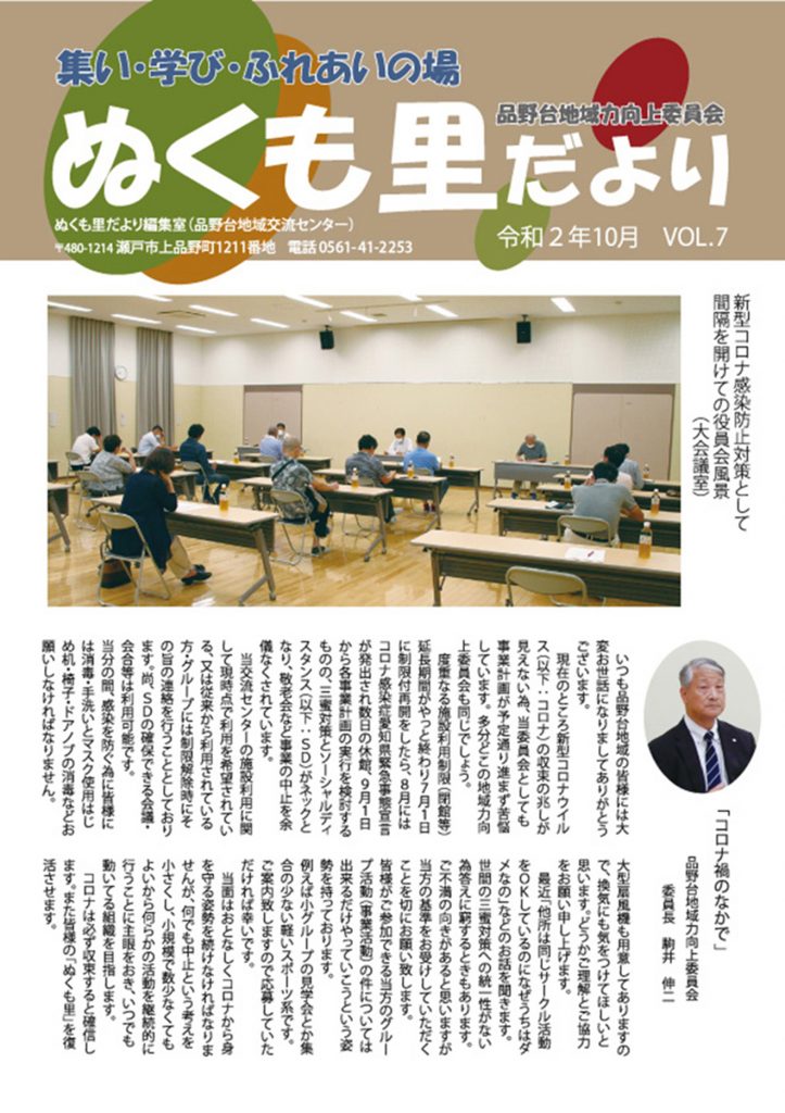 品野台地域交流センターでも 新型コロナ感染予防対策を取りながらの 施設利用を再開しております。 以下クリックしていただければ PDF形式の「ぬくも里だより」がご…