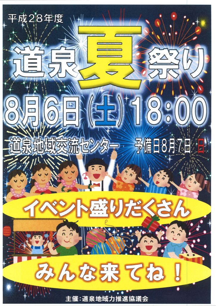 【道泉地域力交流グループ】です。 成人式を上記の日程で行います。 受付開始時間は 13:00〜 式終了時間は 15:00予定となっております。 &…